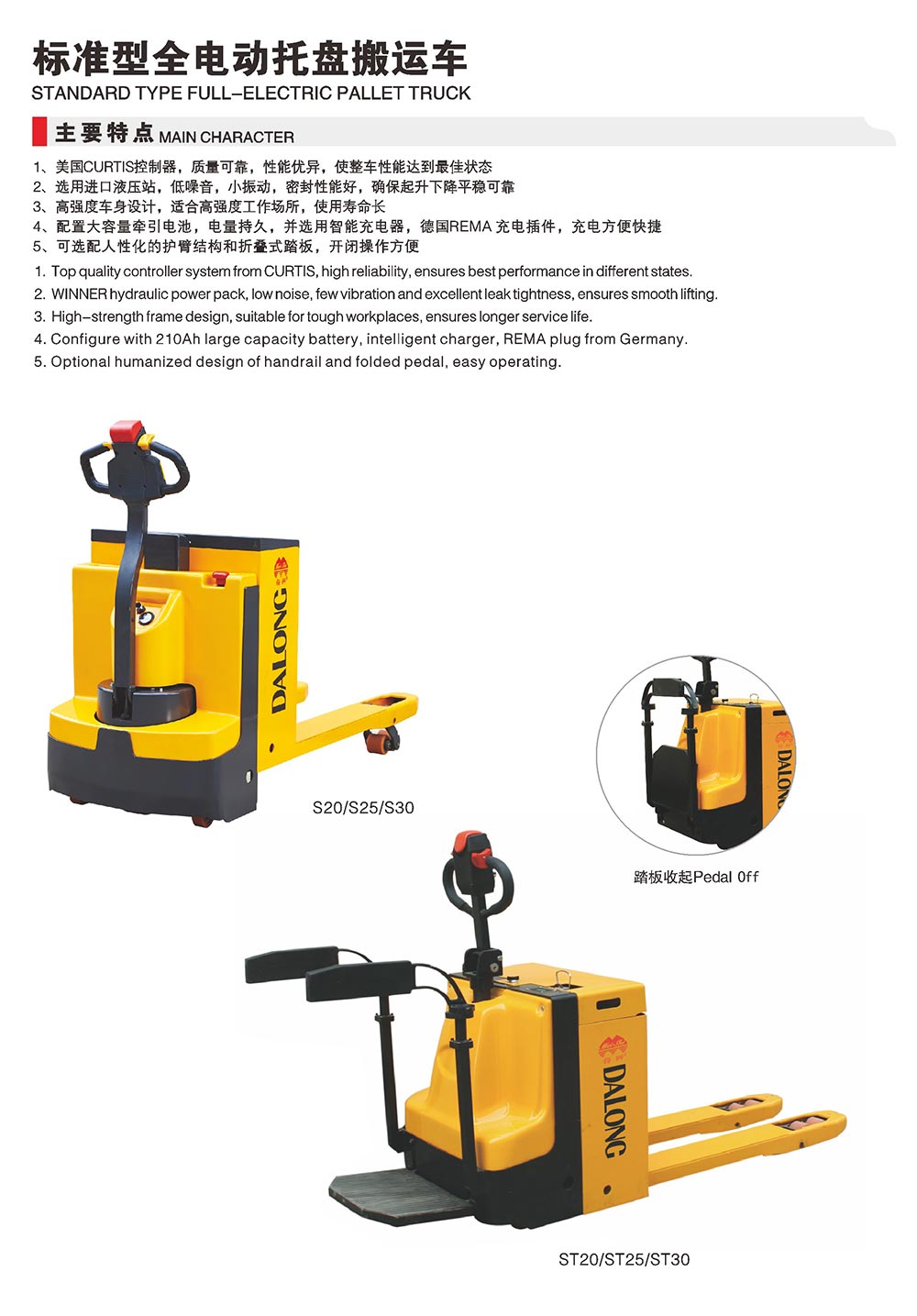 電動(dòng)搬運(yùn)車驅(qū)動(dòng)輪、負(fù)載輪、平衡輪采用特殊工藝的橡膠/聚氨脂輪,大大延長(zhǎng)使用奉命;超小車身設(shè)計(jì),可應(yīng)用于各種狹小通道;運(yùn)行速度快,承載能力強(qiáng),極大提高效率;原裝進(jìn)口無級(jí)調(diào)速電腦系統(tǒng),大容量牽引電池 多功能手柄:操作者可通過電子鎖啟動(dòng)車輛。輕松對(duì)行駛速度加以控制,如需加速只需轉(zhuǎn)動(dòng)手柄上的加速開關(guān),旋轉(zhuǎn)越大,車速越快。