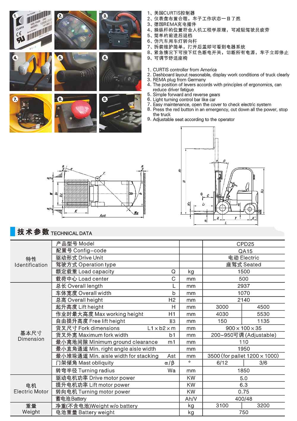 2、 注意觀察電壓表的電壓,若低于限制電壓時,叉車應立即停止運行。
