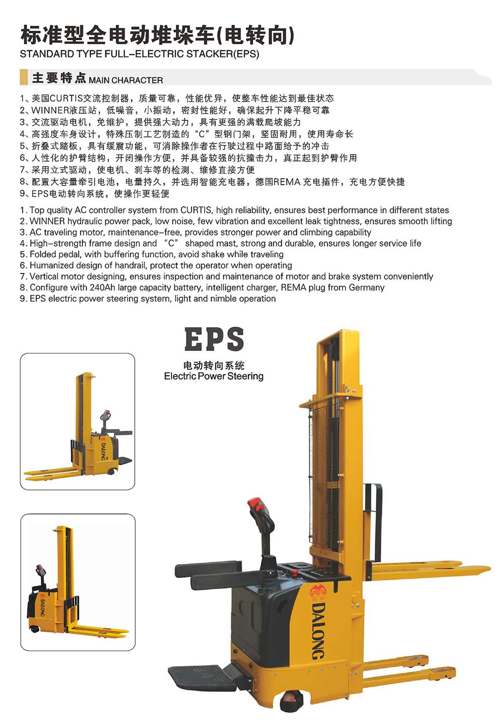 無錫大隆電工機(jī)械有限公司主營(yíng)電動(dòng)叉車,手動(dòng)搬運(yùn)車,電動(dòng)堆垛車,電動(dòng)搬運(yùn)車等,規(guī)格達(dá)上百種,多次通過國(guó)家質(zhì)量技術(shù)監(jiān)督部門的質(zhì)量鑒定,信譽(yù)高,值得選購(gòu)!
