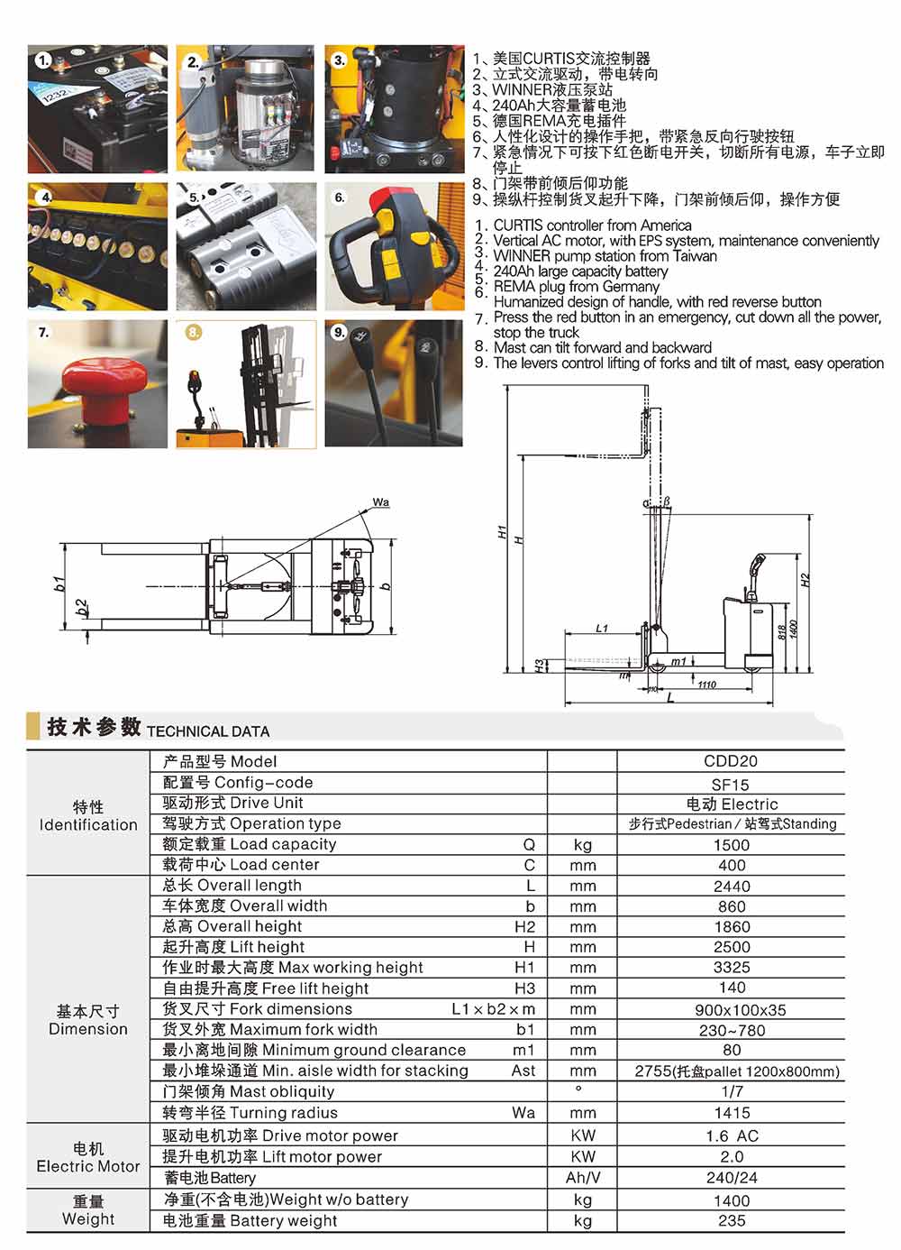 CDDSF平衡重電動堆垛車(新款,帶電轉(zhuǎn)向)